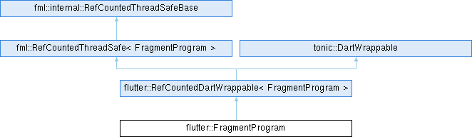 Public Member Functions inherited from flutter::RefCountedDartWrappable< FragmentProgram > | |