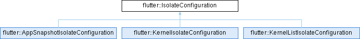 Implemented in flutter::AppSnapshotIsolateConfiguration, flutter::KernelIsolateConfiguration, and flutter::KernelListIsolateConfiguration.