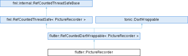 Public Member Functions inherited from flutter::RefCountedDartWrappable< PictureRecorder > | |