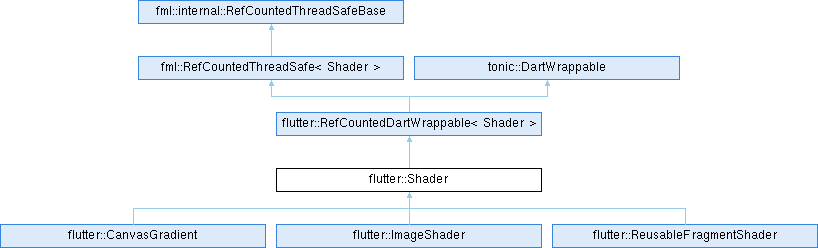 Public Member Functions inherited from flutter::RefCountedDartWrappable< Shader > | |
