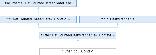 Public Member Functions inherited from flutter::RefCountedDartWrappable< Context > | |