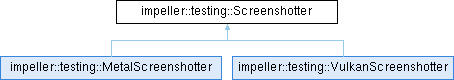 Implemented in impeller::testing::MetalScreenshotter, and impeller::testing::VulkanScreenshotter.