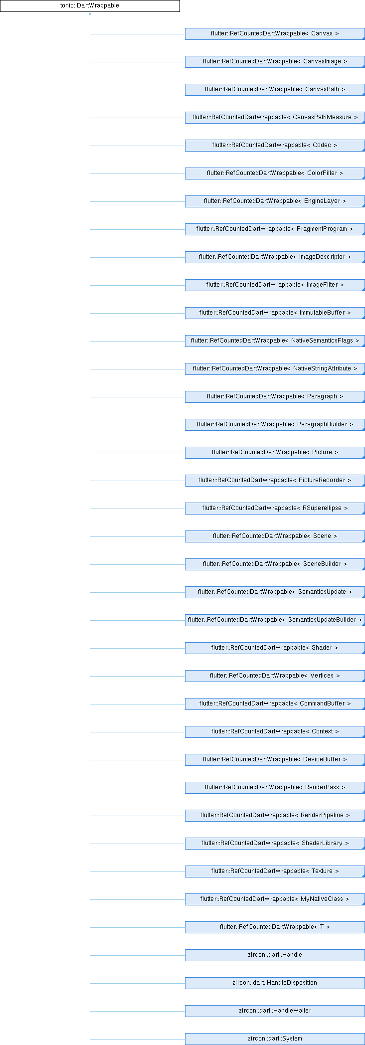 Implemented in flutter::RefCountedDartWrappable< T >, flutter::RefCountedDartWrappable< Canvas >, flutter::RefCountedDartWrappable< CanvasImage >, flutter::RefCountedDartWrappable< CanvasPath >, flutter::RefCountedDartWrappable< CanvasPathMeasure >, flutter::RefCountedDartWrappable< Codec >, flutter::RefCountedDartWrappable< ColorFilter >, flutter::RefCountedDartWrappable< CommandBuffer >, flutter::RefCountedDartWrappable< Context >, flutter::RefCountedDartWrappable< DeviceBuffer >, flutter::RefCountedDartWrappable< EngineLayer >, flutter::RefCountedDartWrappable< FragmentProgram >, flutter::RefCountedDartWrappable< ImageDescriptor >, flutter::RefCountedDartWrappable< ImageFilter >, flutter::RefCountedDartWrappable< ImmutableBuffer >, flutter::RefCountedDartWrappable< MyNativeClass >, flutter::RefCountedDartWrappable< NativeSemanticsFlags >, flutter::RefCountedDartWrappable< NativeStringAttribute >, flutter::RefCountedDartWrappable< Paragraph >, flutter::RefCountedDartWrappable< ParagraphBuilder >, flutter::RefCountedDartWrappable< Picture >, flutter::RefCountedDartWrappable< PictureRecorder >, flutter::RefCountedDartWrappable< RenderPass >, flutter::RefCountedDartWrappable< RenderPipeline >, flutter::RefCountedDartWrappable< RSuperellipse >, flutter::RefCountedDartWrappable< Scene >, flutter::RefCountedDartWrappable< SceneBuilder >, flutter::RefCountedDartWrappable< SemanticsUpdate >, flutter::RefCountedDartWrappable< SemanticsUpdateBuilder >, flutter::RefCountedDartWrappable< Shader >, flutter::RefCountedDartWrappable< ShaderLibrary >, flutter::RefCountedDartWrappable< Texture >, and flutter::RefCountedDartWrappable< Vertices >.