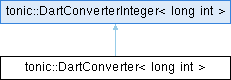 Public Types inherited from tonic::DartConverterInteger< long int > | |